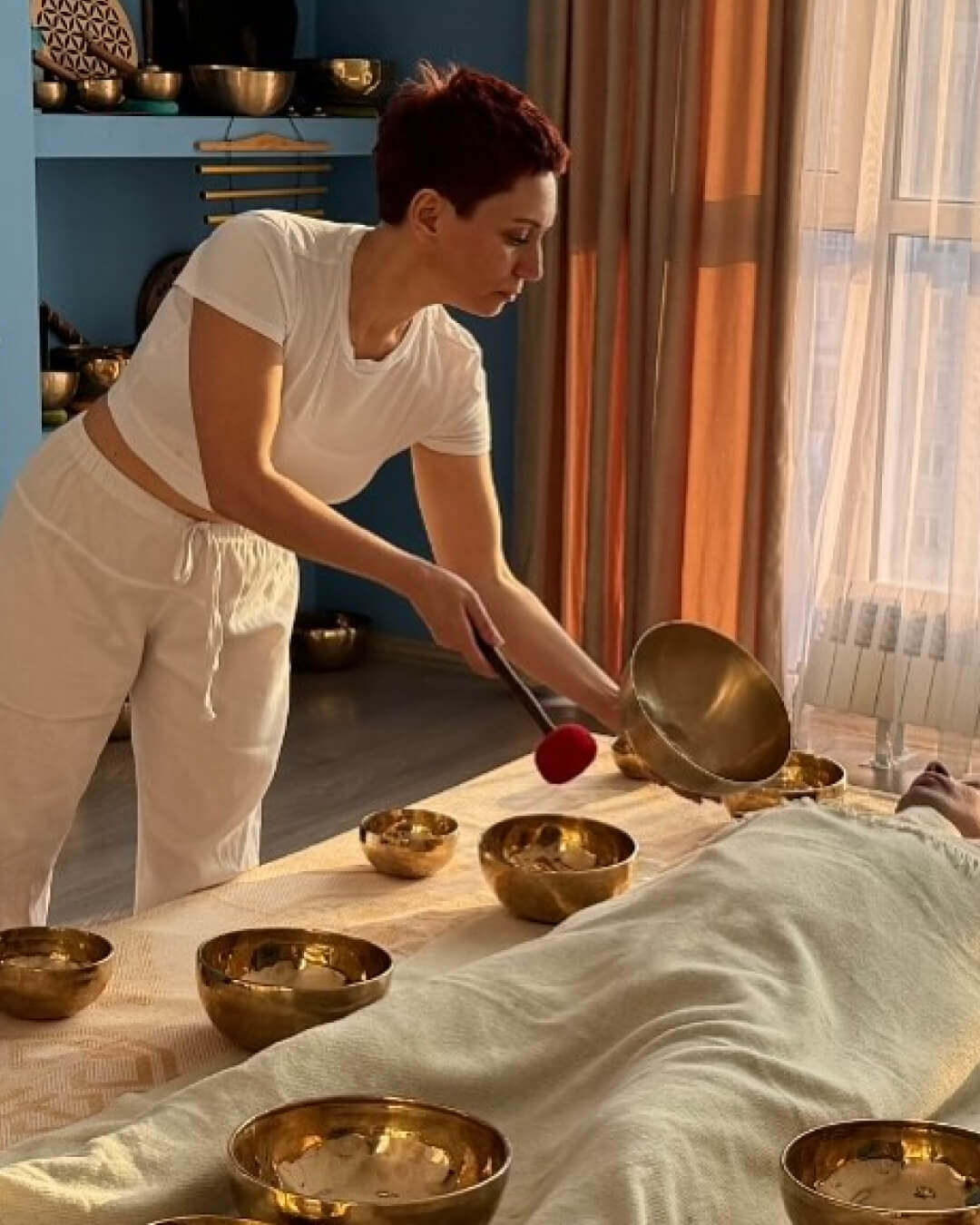 Она занимается оздоровительными практиками более 15 лет и посвятила вибрационно-акустическому массажу с поющими чашами и звуковой медитации SoundHealing всю себя: