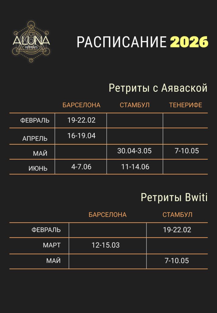ретриты с аяваской в Испании, Германии, Турции в 2026 г.