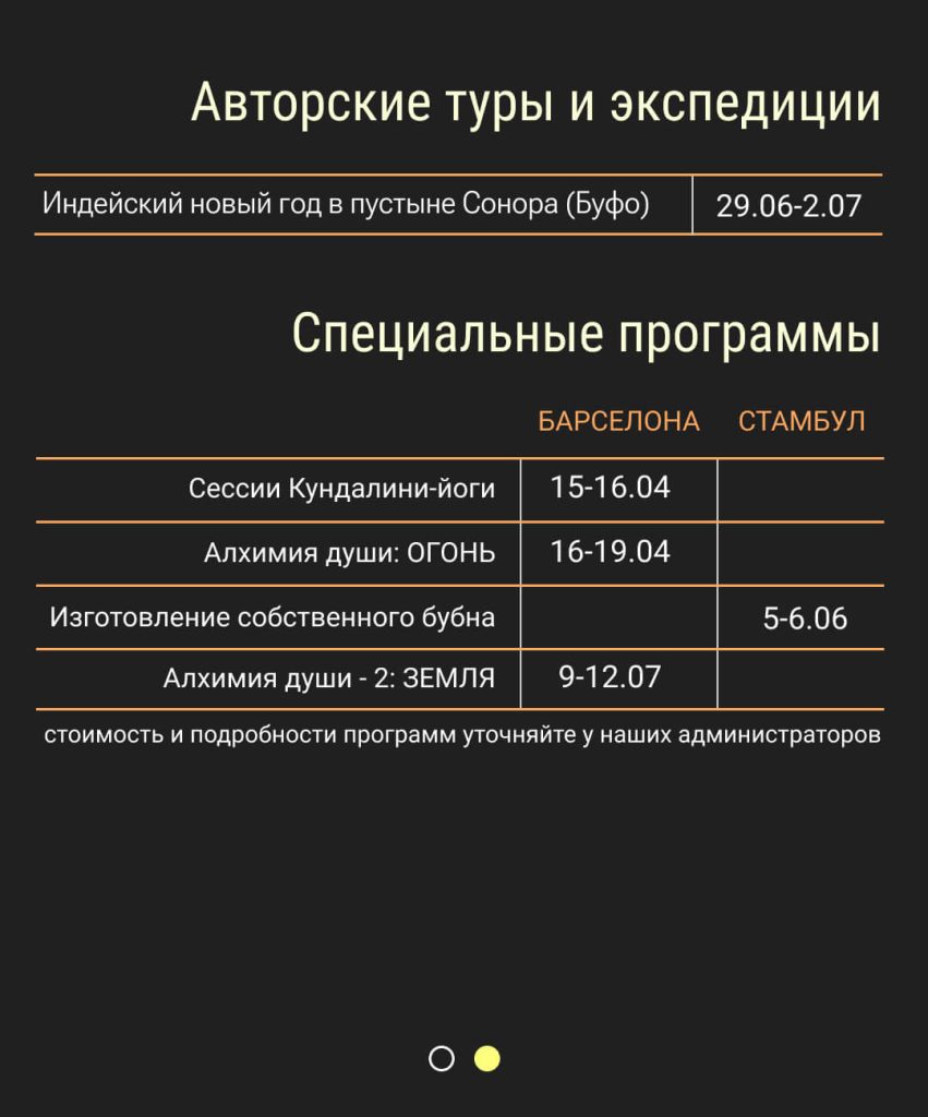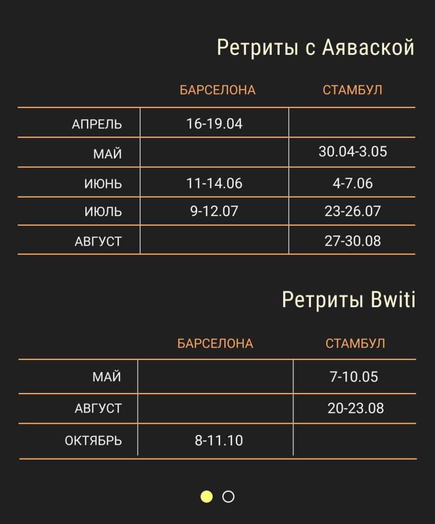 Расписание ретритов, авторских туров и других мероприятий
