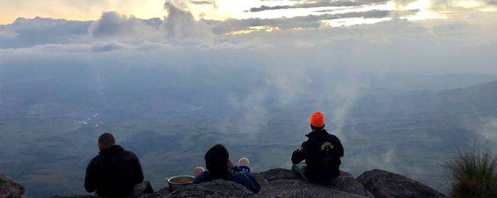 Пора прощаться со сказочным древним миром. Утром после завтрака участники экспедиции спускаются к подножию величайшей столовой горы мира. Отдых по дороге на одном из “балконов” – смотровой площадке с волшебными видами на Гран Сабана. Разбиваем лагерь у подножия. Ужин. Ночь в палатках.